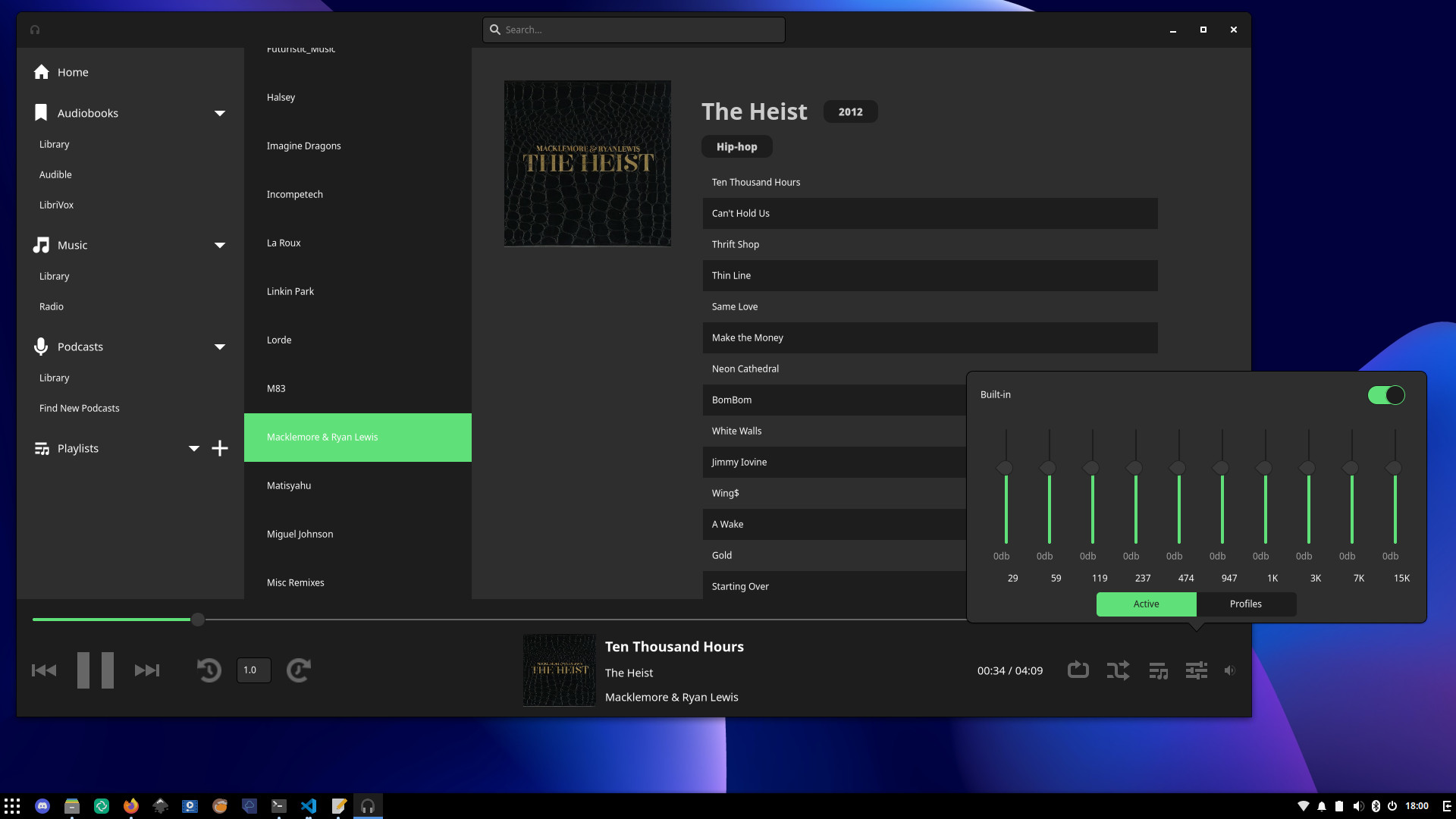 One of the biggest things I wanted to add to Koto was a proper 10-band equalizer, profiles, and the ability to set a preferred default. In the future, I want to expand this to be content-type specific equalizer defaults. For example, you may listen to a bunch of EDM and prefer to have an equalizer profile with a bunch of bass, however you may want to automatically switch to a profile that boosts the specific frequencies of the human voice for podcasts and audiobooks. So providing that level of granularity is something I want to accommodate.